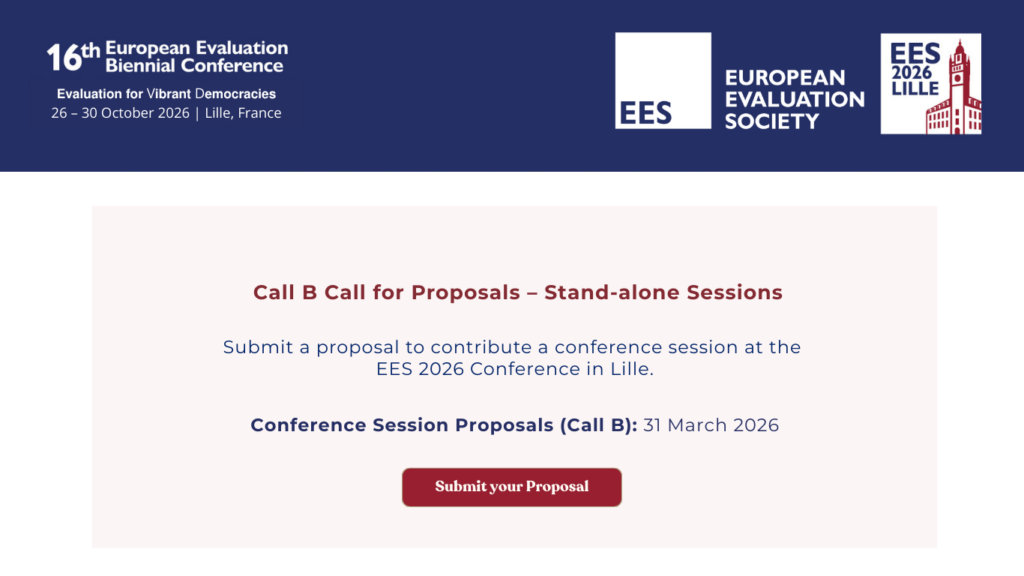 Call B invites you to propose the contribution you would ‘love’ to bring to European Evaluation Society 2026 in Lille.